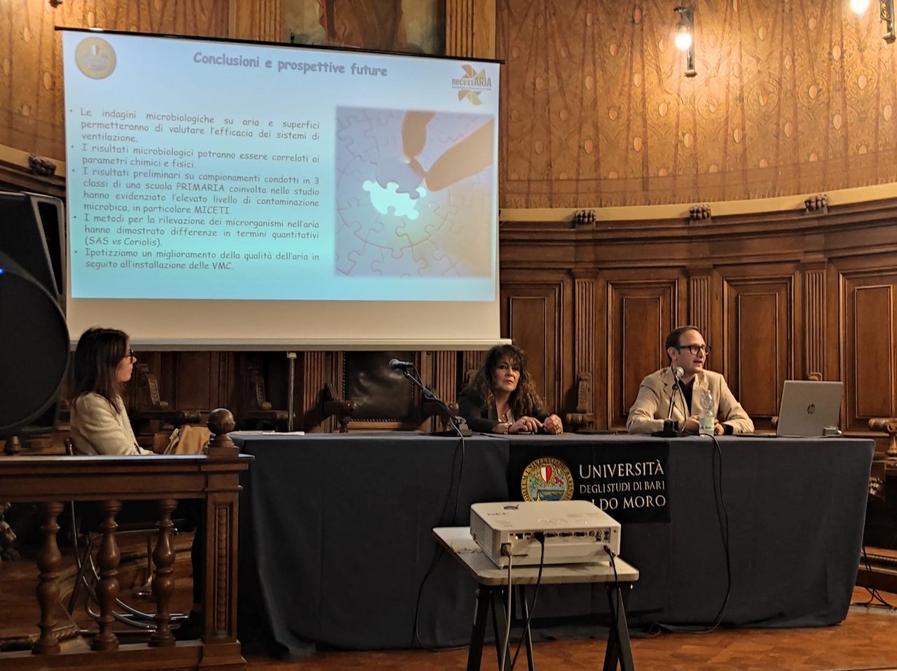 Francesco Triggiano dell'Università degli Studi di Bari Aldo Moro ha presentato la relazione "Dal campionamento all'analisi: metodi di studio dei contaminanti microbici in Puglia". L'intervento ha illustrato le tecniche avanzate di campionamento e analisi utilizzate per identificare e quantificare i contaminanti microbici negli ambienti scolastici pugliesi, fornendo una panoramica completa delle metodologie scientifiche adottate e dei risultati ottenuti.