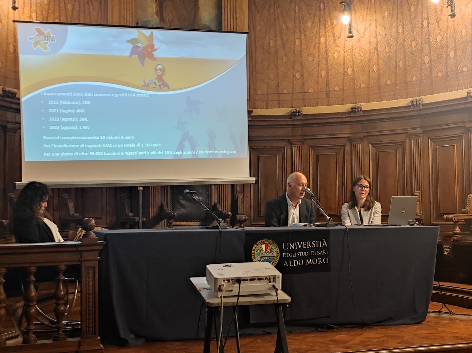 Andrea Bartoli della Regione Marche ha condiviso l'esperienza regionale attraverso la relazione "VMC nelle scuole: l'esperienza della Regione Marche". La presentazione ha illustrato il percorso di implementazione dei sistemi di ventilazione meccanica controllata nelle scuole marchigiane, evidenziando le strategie adottate, le difficoltà incontrate e i risultati conseguiti.